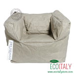 L’ecopoltrona Essent'ial è interamente realizzata in materiali riciclati o riciclabili e assemblata con un derivato del pet, riciclato al 100%. La poltrona viene fornita con una fodera interna di cotone imbottita con perle di polistirene. In alternativa, si può acquistare anche solo il rivestimento (ecopoltrona vuota) ed effettuare l'imbottitura con il recupero di materiali: per esempio capi tessili dismessi, carta, bottiglie di plastica o qualsiasi altro materiale suggerito dalla fantasia ...